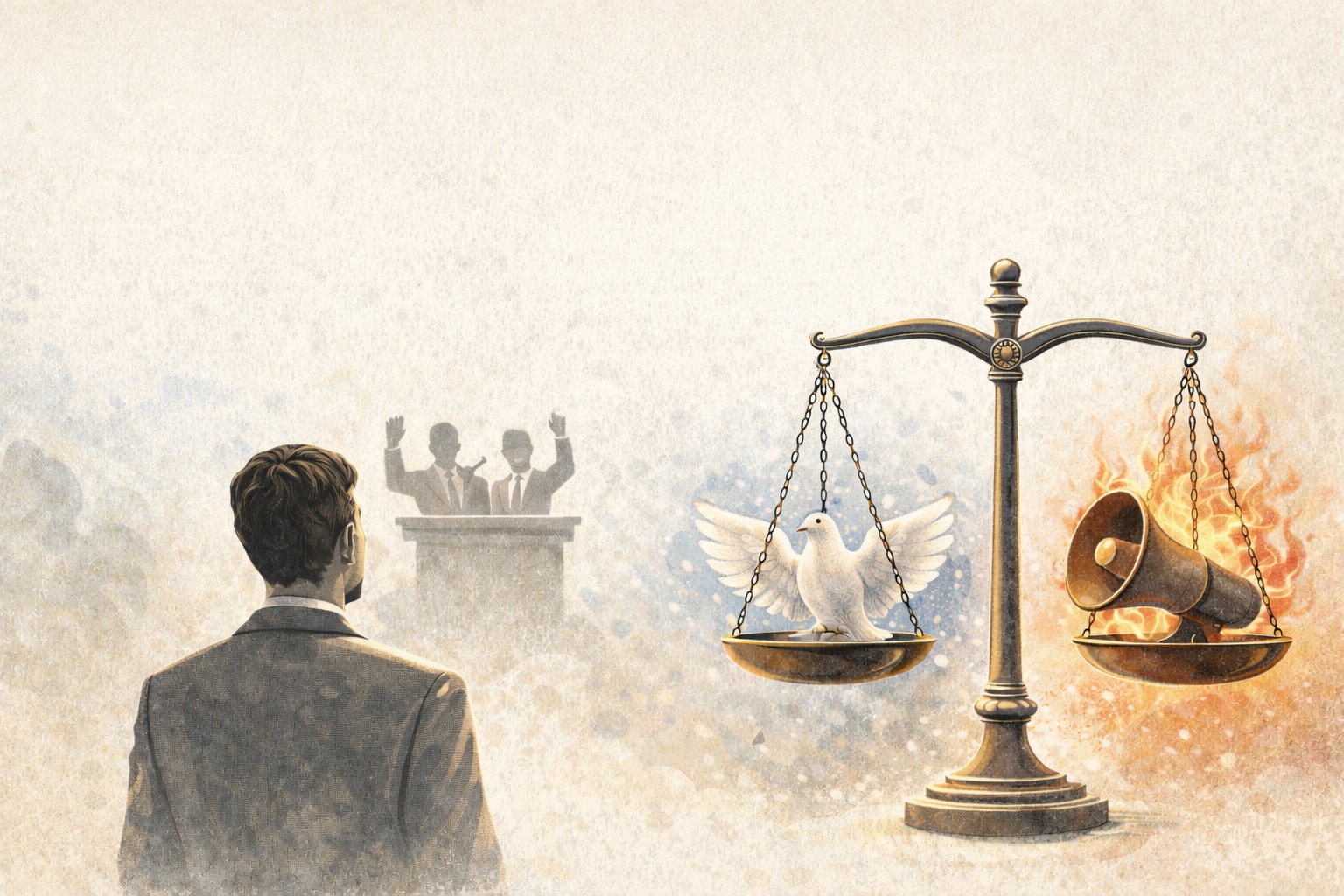 En medio de la cuarta estrofa, mientras cantaba, se llevó la mano a la frente, intentando ver mejor qué sucedía frente a él. Algunos ya miraban hacia el techo. Otros comenzaban a moverse hacia la salida.